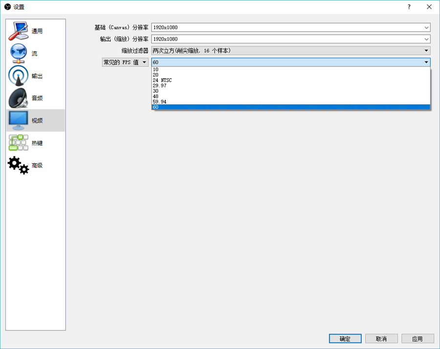通過BU110,在OBS界面可以進行錄制視頻,可以選擇錄制視頻的幀率以及分辨率,其支持1080P 60幀無壓縮HDMI影像采集。