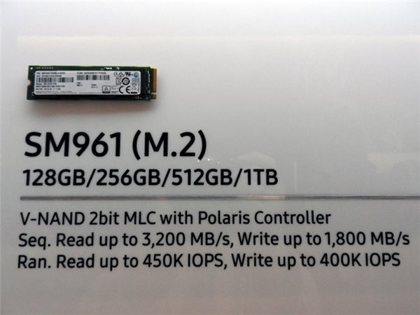 近日在日本召開的三星SSD論壇上,三星展示了數款未發表的新產品,當中就包括了SM961和PM961。SM961是SM951的后繼者,同樣支持NVMe,采用PCI-E 3.0 x4通道,速度可以達到讀取3200 MB/s,寫入1800 MB/s,而現在的SM951最大讀寫速度不過2260/1600 MB/s,SM961性能提升極大。