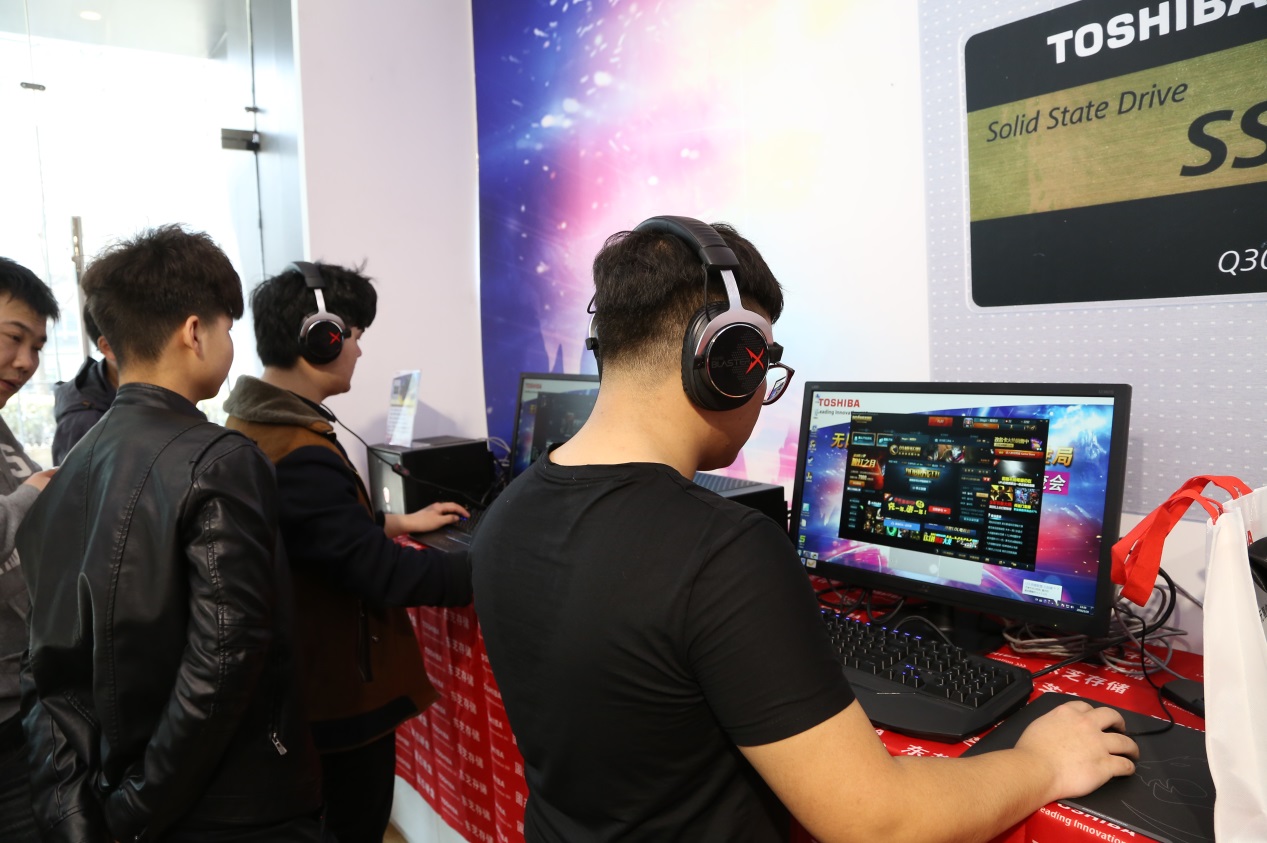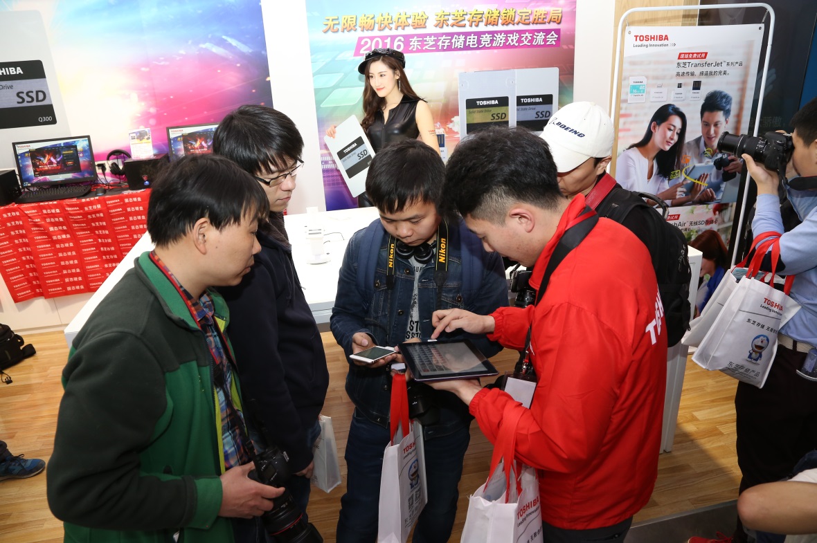 為了讓到場的玩家們能夠更好的切身體驗到東芝Q300固態硬盤在游戲過程中所發揮的運行速度以及其優勢特性,現場特別擺放了4臺配有東芝Q300固態硬盤的游戲體驗平臺供玩家體驗, Q300 支持SATA3接口,擁有550/s讀取,530MB/s寫入速度,3年質保,最大960G容量可選,極高的性價比是硬盤升級首選,而其升級版Q300 Pro擁有550/s讀取,520MB/s寫入速度,19納米MLC閃存,5年質保,能大幅度提升圖文處理和游戲等操作的運行速度。