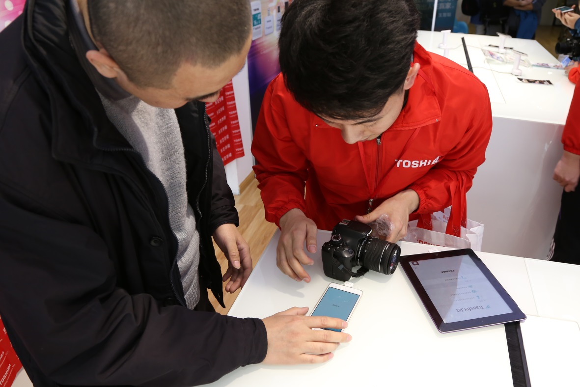 產品展示區更展示了東芝存儲全系列的存儲產品,其中Flash Air以及TransferJet傳輸寶更是吸引了不少攝影愛好者的目光紛紛上前體驗。同時,攝友們也可在一旁的拍攝區拍攝《英雄聯盟》Coser 后前去工作人員處體驗。Flash Air是一款無線SD存儲卡,用戶只需將其插入相機,通過智能設備安裝免費的Flash Air App來直接訪問所拍攝的照片及視頻,TransferJet傳輸寶是一款可跨平臺傳輸數據的傳輸設備,只需彼此靠近,用戶即可在智能手機、平板電腦、計算機或其它設備上使用TransferJet?進行高速的數據傳輸,而最新的TransferJet SDHC存儲卡更是為攝影愛好者們提供了更高速,更便捷的傳輸方式。