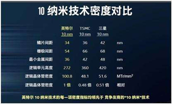 同時,Intel這一產(chǎn)品的邏輯晶體管密度達(dá)到了100.8MTr/mm2,大約是三星和臺積電10nm工藝芯片的兩倍。