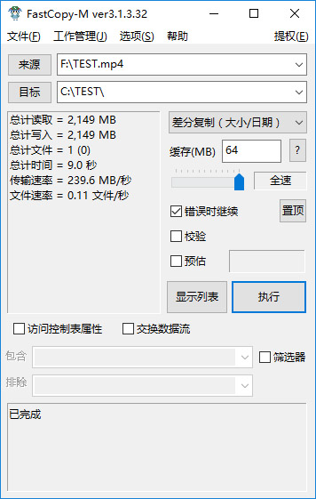 Fastcopy傳輸性能測(cè)試: