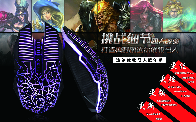 不斷雕琢自己的產品,不斷改善自己的工藝,不辭疲勞享受著產品在手上質變升華的過程,這便是達爾優牧馬人進階的故事。繼承了工業精神,達爾優憑借多年的經驗,開始推出自己旗下的精品。達爾優牧馬人猴年版亦是如此,它繼承了達爾優引以自豪的制造工藝,從設計的靈光閃現,到不斷升級的精準打造,達爾優牧馬人猴年版與生俱來的裂紋印記,注定了它一代鼠標的傳奇。