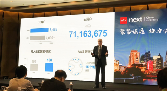 此次峰會Infor帶來行業最新戰略,以及當代企業數字化轉型以及未來互聯智能的時代的討論以及一些針對時下企業的產品。Infor作為全球第三大商業應用軟件及服務供應商,到目前為止,其已擁有16,000名員工,在全球超過170個國家和地區擁有超過90,000個客戶,其收入已達到28億美元,客戶和創新是Infor的核心所在,在近年中,Infor增勢強勁,如今云用戶數量71,163,675位,AWS 數據中心云客戶數據在全球 15 個地區托管。