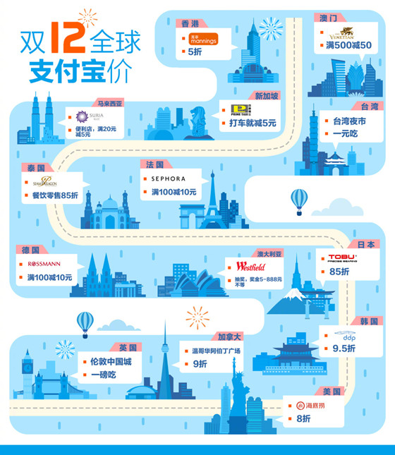 支付寶雙12國際優惠活動規模再擴大 這四個地區的朋友有福了!