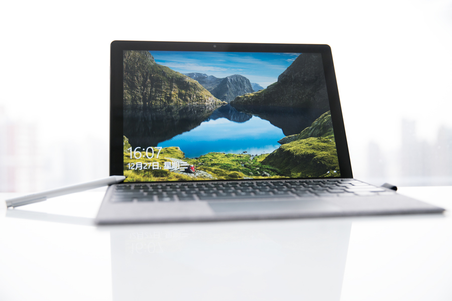200萬像素82°廣角的前置攝像頭位于屏幕頂上。對于在外辦公的人來說,最直接高效的溝通方式就是視頻,所以前置攝像頭還是很有必要的。