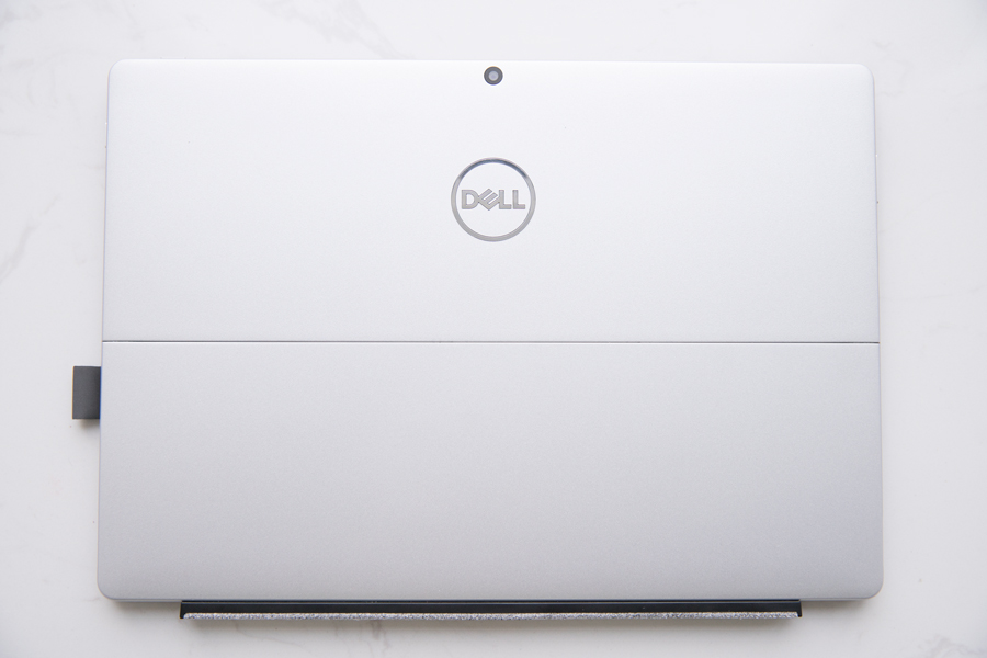 機身背部為金屬材料,后置攝像頭位于頂部正中間,擁有800萬像素、75°廣角,支持自動對焦。其下方是戴爾極具辨識度的Logo。