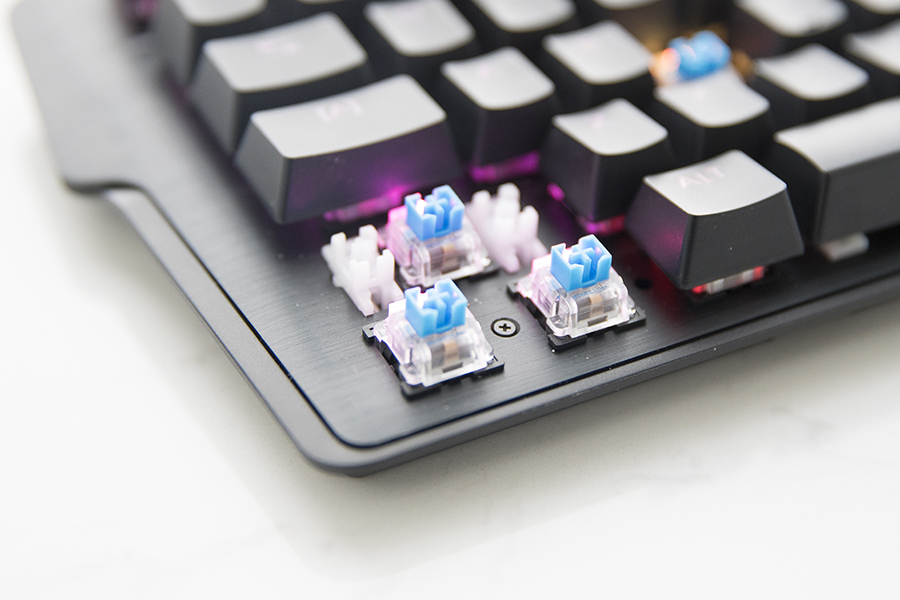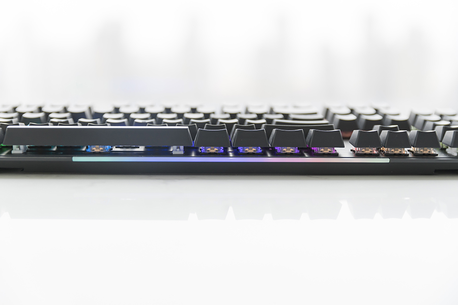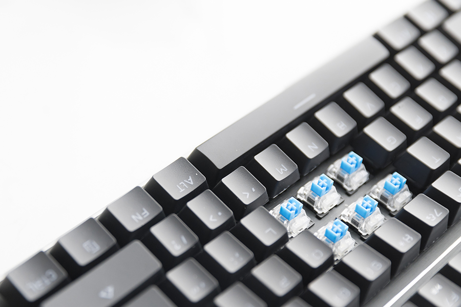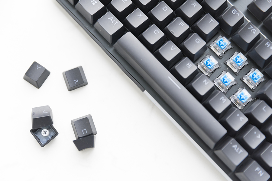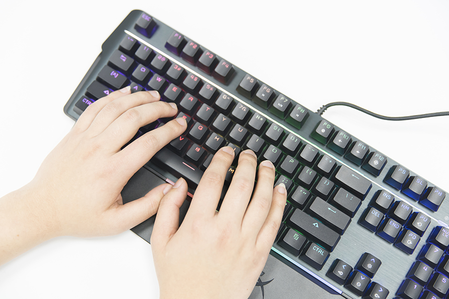 說完這些花里胡哨的東西之后自然是要回歸到機械鍵盤最關鍵的特點——按鍵手感上了。首先,HyperX Mars火星RGB電競機械鍵盤的鍵帽材質為ABS,在表面還做了細膩的磨砂處理,經久耐用,比一般的ABS材質更不容易打油,這也算是變相解決了ABS鍵帽透光效果更好但容易打油的矛盾吧。