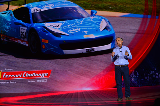 Krzanich還提到了目前非常火熱的一項技術——人工智能,你能夠在各種產品上看到人工智能技術的相關介紹,這項技術已經逐漸滲透到人們生活的方方面面。Krzanich在發布會上表示,英特爾正在與法拉利北美合作,將人工智能帶入法拉利北美挑戰系列賽中,在賽事直播時通過英特爾至強處理器的處理性能以及Neon架構的學習能力,提升賽事轉播的在線流媒體用戶體驗,深度挖掘賽事成績數據。