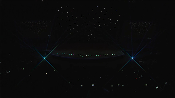 在演講會結束后,英特爾在拉斯維加斯大道上舉行了一次戶外的無人機燈光秀,伴隨著貝拉吉奧的音樂噴泉,250架英特爾Shooting Star照亮整個夜空,這些無人機全部由一個人控制,能夠變換超過40億種色彩組合。