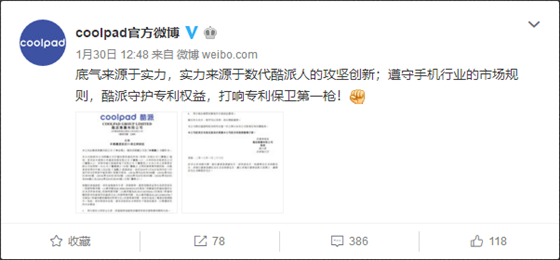 近日酷派起訴小米侵犯專利權事件愈演愈烈,首先是酷派官微在微博上曬出酷派對小米公司提出的法律訴訟書,并表示酷派守護專利權益,打響專利保衛第一槍!
