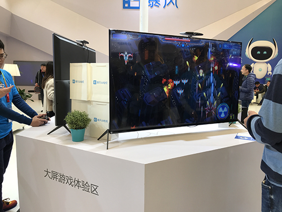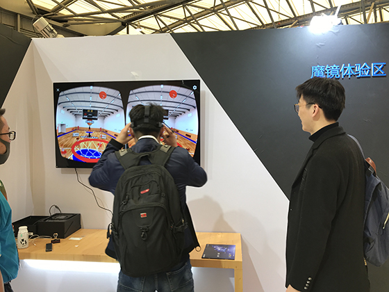暴風TV的展臺內還設置有暴風魔鏡體驗區,暴風魔鏡也是它們的經典產品,觀眾在現場被虛擬現實的巨大魅力和震撼效果所征服。暴風展臺內還有許多觀眾在使用暴風AI人工智能電視體驗大屏游戲的暢快,場面十分熱鬧。