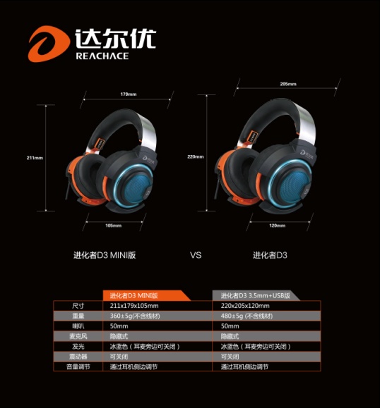 北京時間2016年4月25日,達(dá)爾優(yōu)發(fā)布全新進(jìn)化者D3 Mini版游戲耳機(jī)。在保留進(jìn)化者D3的原有功能下,D3Mini版在尺寸和重量上略作修改,它將于4月底全面上市。