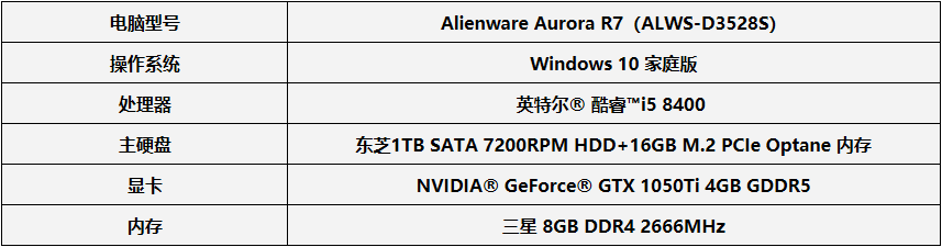 手中的這臺Alienware Aurora R7為I5 8400版本,具體參數(shù)如下: