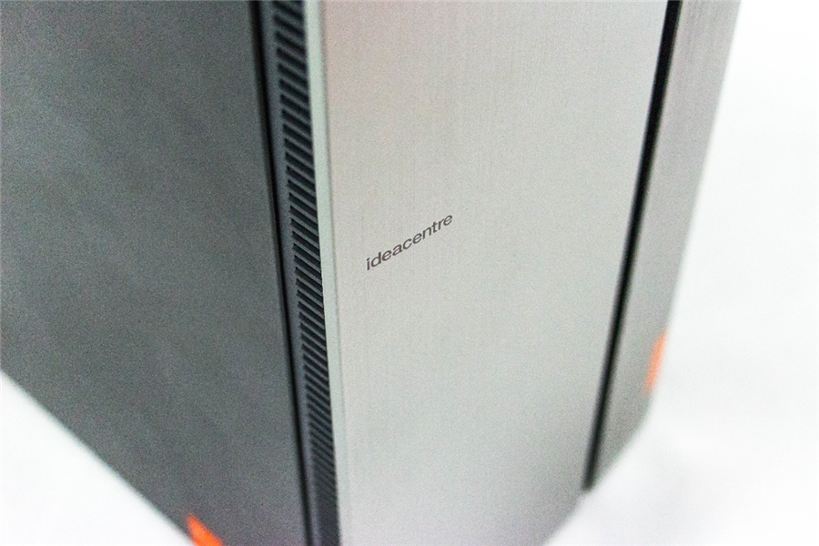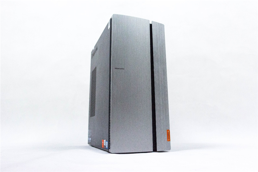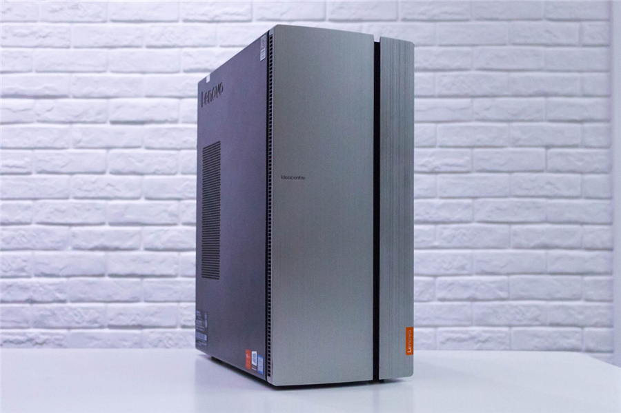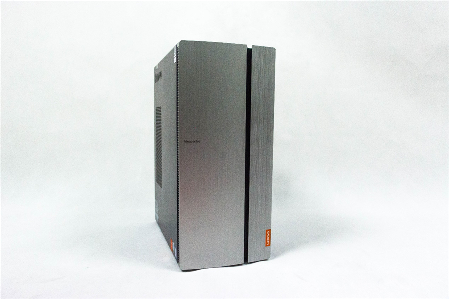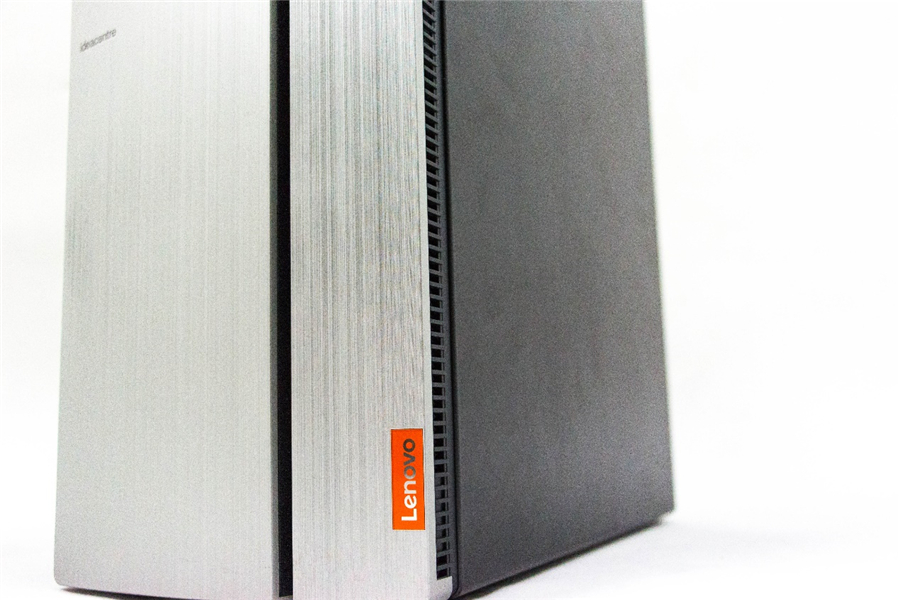 作為聯想當打的商務主機產品,天逸510pro的整體配色為銀灰+黑。機身前面板采用了拉絲工藝,黑色溝槽將銀灰色的正面分割成兩個區域,既兼顧了右側磁吸式翻門的功能,也使得正面不顯得單調。配合一左一右,一上一下的ideacentre和橙色Lenovo LOGO,凸顯了簡約精致的時尚商務氣息。
