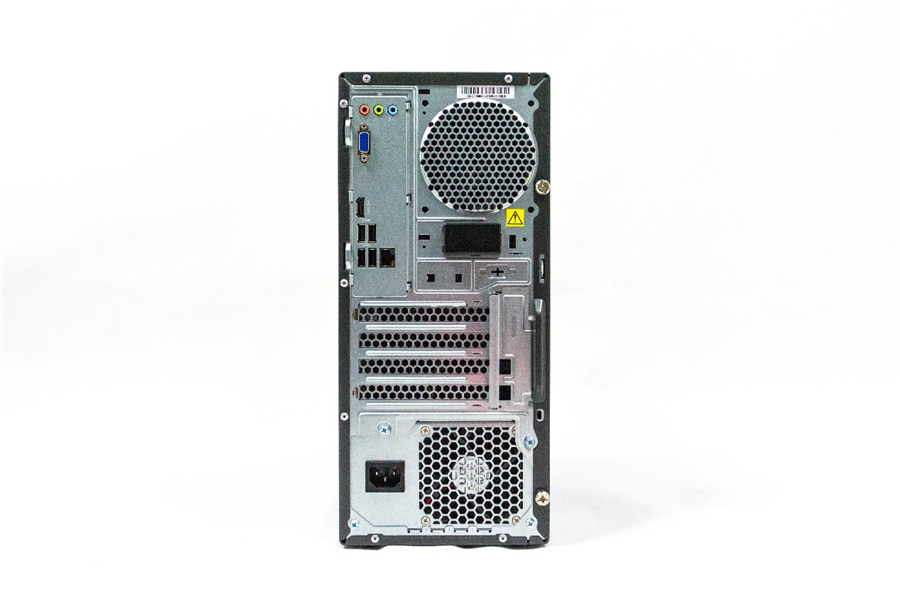 與此對應的,后置I/O接口的配備就豐富了一些。從上到下依次為3.5mm音頻接口,一個VGA接口,一個HDMI接口,兩個USB3.0接口,兩個USB2.0接口以及一個RJ45網口。可以看到,天逸510pro對于并沒有配備PS/2接口,因此對于老舊的鍵鼠設備并不兼容。