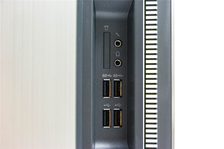 前置I/O面板的設置極為簡潔,一個麥克風插孔,一個耳機插孔,4個USB3.0接口。可以看到應該是預留了一個讀卡器的位置,不知是否是因為版本原因沒有配備。