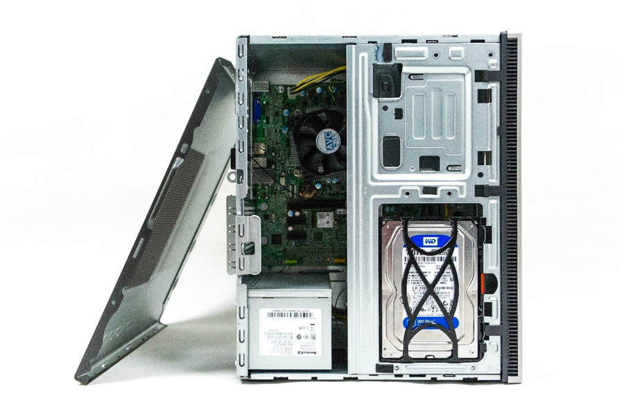 這次我們測評的這臺天逸510pro為i5-7400款,搭配了聯想定制的m-ATX B250主板,4G DDR4內存,16GB傲騰內存+1TB西數藍盤的存儲組合。這一配置絕對稱不上強大,將將能夠運行Win10 64位系統,搭載了USB3.0接口,符合主流的辦公需求。