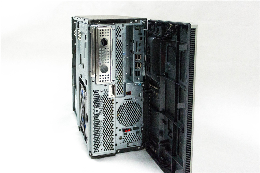天逸510pro作為聯想的主力產品,其內外機箱結構經過了精心的設計,可以說極富特色和實用性。天逸510pro的整體設計思路貫徹了時下流行的“模塊化”和“免工具化”,獨具特色地設計了四個“門”,配合其他結構上的巧妙設計,使得整體的易維護性和拓展性上了一個新的臺階。