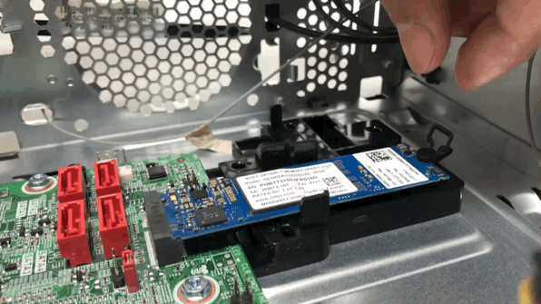 值得一提的是,聯想也為硬盤設計了專門的快拆支架,無需工具,只要徒手就能快速卸下。