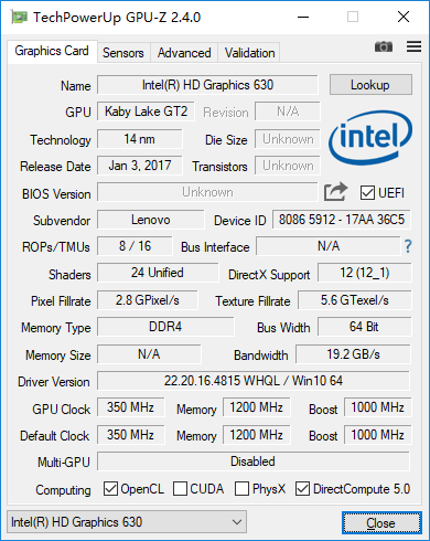 I5-7400采用了14nm工藝,4核4線程,主頻頻率為3.0GHz,最高睿頻至3.5GHz。他還自帶了一枚Intel HD Graphics 630核心顯卡,核心頻率為350MHz,整體功耗65W。