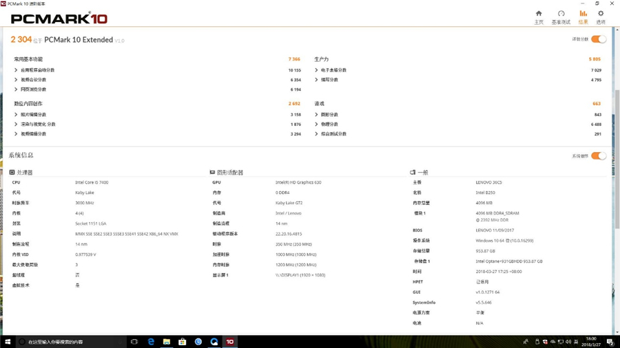 最后,我們通過PCMark 10進行整體性能測試。天逸510pro得分2304分,對于商務機來說這一表現可以說是不錯了。