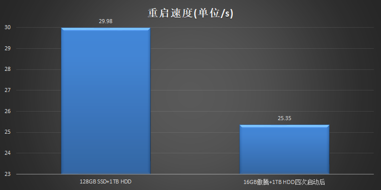 在重啟速度測試中,我們可以看到傲騰占據了4.5秒的明顯優勢。