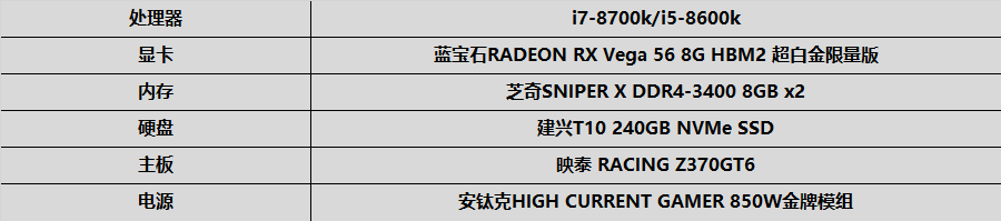 此外,我們還準備了另一套i7-8700k/i5-8600k平臺進行對比測試。我們盡力保證兩個平臺的硬件參數(shù)公平,在顯卡、電源、內(nèi)存等方面完全相同,僅在CPU與配套芯片組方面有所異同。對比測試平臺參數(shù)如下: