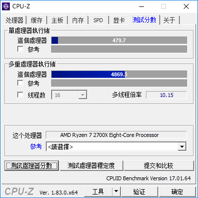 CPU-Z無須贅述,幾乎是每一個PC玩家的裝機必備。通過CPU-Z自帶的性能測試,我們可以將處理器的性能進行量化比較,大致了解到它們性能之間的差距。