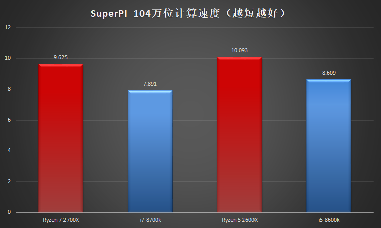 通過測試,我們發(fā)現(xiàn)了第二代AMD銳龍?zhí)幚砥髟趩魏烁↑c計算性能上的明顯劣勢,這也是AMD處理器的傳統(tǒng)短板。這不但是主頻方面的劣勢,也是處理器架構(gòu)設(shè)計方向差異所致。在Super PI這一項目上,第二代AMD銳龍?zhí)幚砥髋c對手的差距明顯。