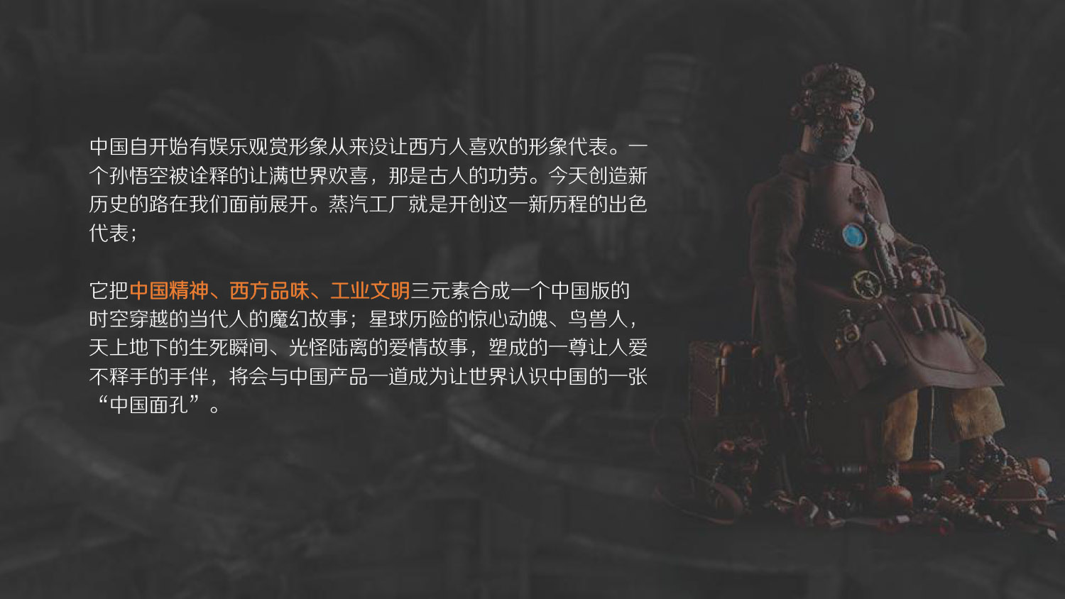 上海翎溪文化傳播有限公司是國內綜合性文化公司之一,近年來憑借自身強大的資源平臺、整合能力和影響力正式發力于中國整個產業鏈市場,其中主要涉足電影、游戲、繪本、動畫、主題樂園、動漫產品及周邊等,以獨特的方式解讀著中國創造,以及新時代下的中國文化品牌;同時旗下主營國內自主原創IP《蒸汽工廠》。