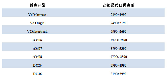 優(yōu)惠價(jià)格–活動(dòng)當(dāng)天,部分戴森產(chǎn)品將向天貓消費(fèi)者提供降幅最高達(dá)1000元的價(jià)格優(yōu)惠 。