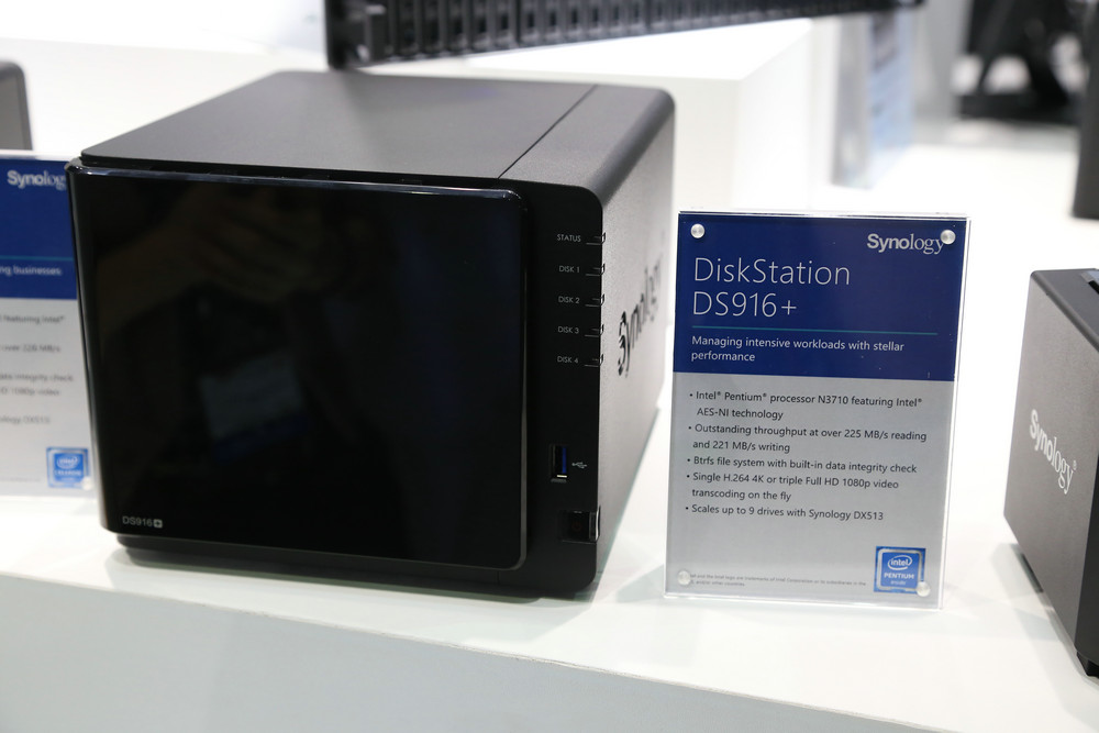 同時群暉也展出了最新的DS916+并且對幾款機型的CPU進行了升級, DS916+ 為滿足專業用戶的需求而設計,配備強大的四核心處理器與 AES-NI 硬件加密引擎、支持多達 9 顆硬盤的高可擴充性及可供彈性選擇的 2GB 和 8GB 內存 ,能更完善地同時支持多項任務,有效提升企業動能。