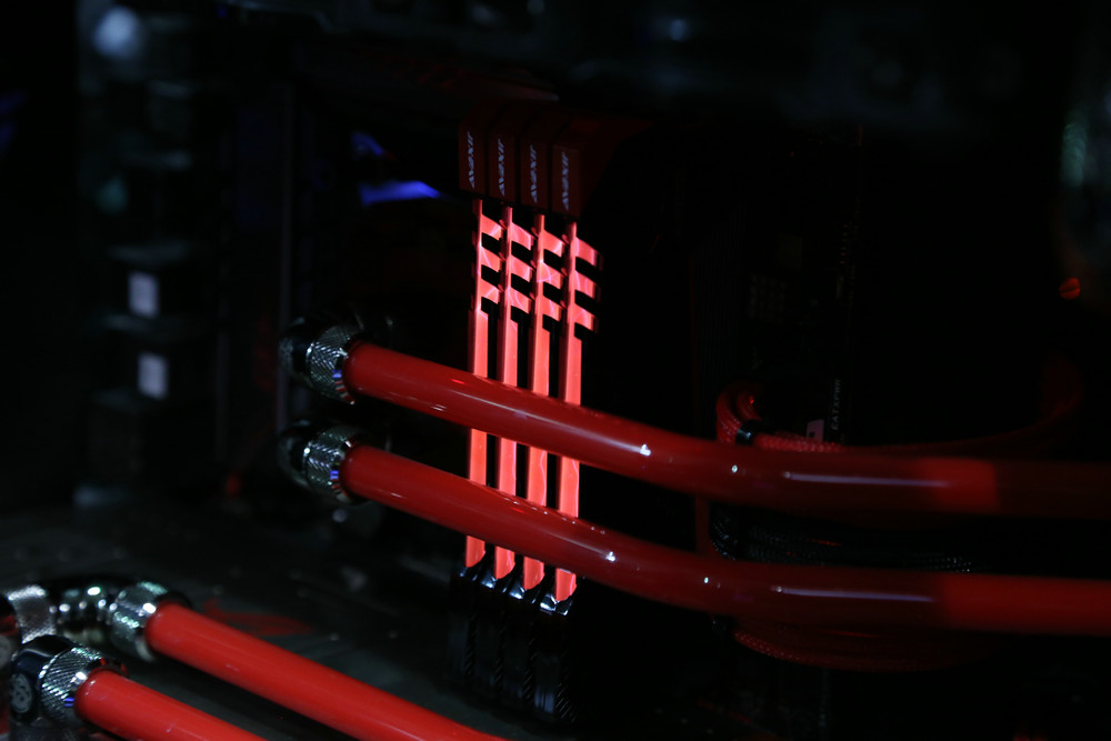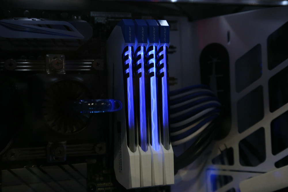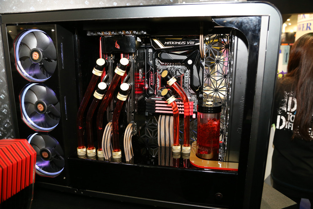 現(xiàn)場(chǎng)的玩家自定義主機(jī)也是別具一格,引來不少觀眾駐足欣賞,也是完全符合了雷電系列炫酷的風(fēng)格,除了采用宇帷雷電系列內(nèi)存,同樣也搭載了會(huì)發(fā)光的SSD,簡(jiǎn)直是炫酷的不行!