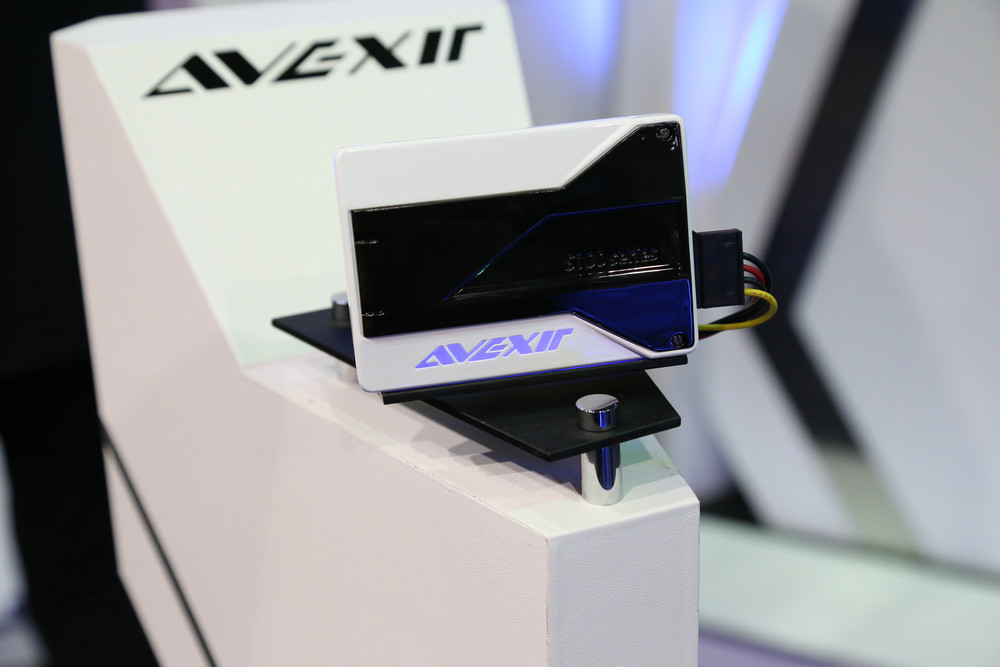 除此之外,首款會(huì)發(fā)光的SSD也是吸引了不少觀眾駐足,除了有全新推出的搭載雷電技術(shù)的發(fā)光PCI-E SSD產(chǎn)品,AVEXIR S100系列也是搶眼,除了是世界首顆會(huì)發(fā)光的SSD,其性能表現(xiàn)也并不馬虎,提供最大550MB/s的讀取效能,最大460MB/s的寫入效能,能夠滿足所有桌面計(jì)算機(jī)的用戶需求,不論是安裝操作系統(tǒng)開機(jī),或者是執(zhí)行應(yīng)用程序啟動(dòng),AVEXIR S100系列在用戶鼠標(biāo)點(diǎn)擊彈指之間就能瞬間完成,讓您的計(jì)算機(jī)使用體驗(yàn)達(dá)到順暢無比的快感,而這款SSD雖然只能出廠時(shí)定義顏色,不能自己改,但擁有可以用于筆記本用的超薄版本。