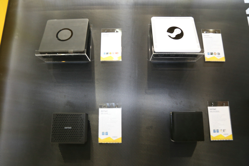 索泰也在現場展示了多款mini PC,而不少的機型也都標示了“VR Ready”的字樣,這也表明了這些機型也都會支持“HTC Vive”,其中索泰MAGNUS EN980 mini PC則是目前索泰推出的最小的VR Ready PC,其采用了也冷技術,搭載了NVIDIA GeForce GTX980以及Intel Core i5-6400處理器,兩個DDR3L-1600 SODIMM插槽,一個2.5英寸硬盤槽支持M.2 SATA SSD,I/O接口方面有DP接口x2,HDMI X2,也是足夠讓玩家們能夠體驗到VR所帶來的樂趣。