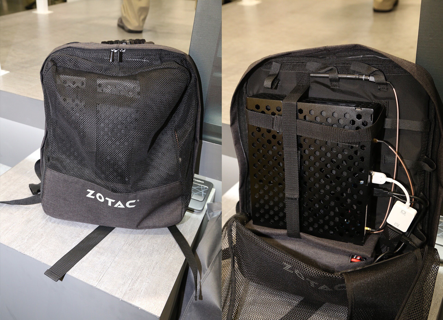 自從HTC VIVE以及Oculus Rift的上市,也開啟了“VR 元年”這個說法,而此次 COMPUTEX 2016上幾乎每個展臺都回設有VR 體驗區,但索泰展臺有的卻不只是VR的體驗,在索泰展區外測就可以看到一出VR體驗區,大家一定很奇怪體驗者身上有一個背包是什么?這就是索泰專為VR設計的移動VR背包,所謂的VR背包是一個可以將迷你PC或是小巧的ZBOX裝入其中,并搭配大容量的移動電源使用,這不僅讓用戶在體驗VR的時候擺脫了許多束縛,也稱襯托了索泰迷你PC足夠迷你,功耗低以及性能強的各項特性優勢。