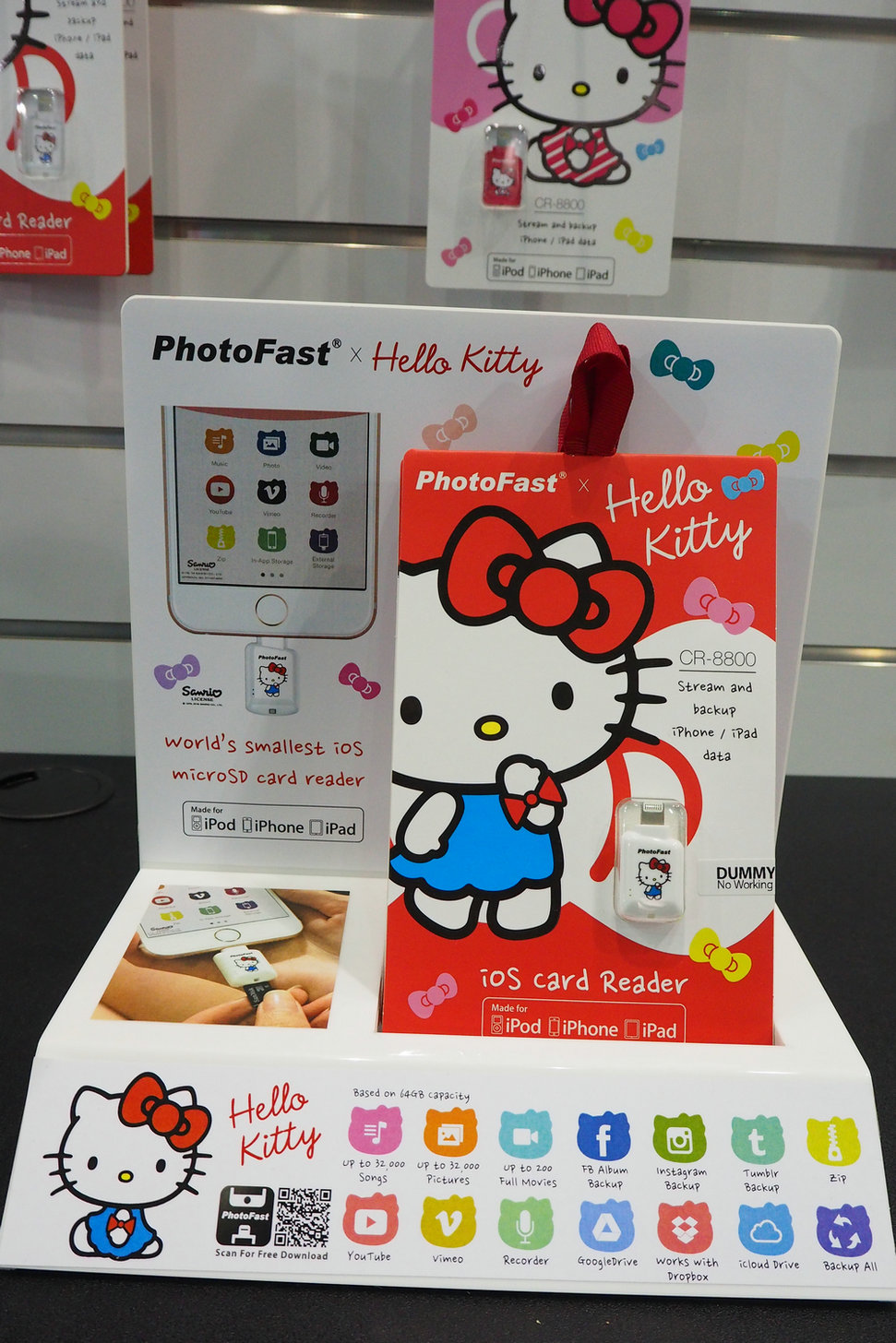 現場還推出了Hello Kitty 特別版讀卡器設備,這可萌化了不少少女心啊,用戶可以通過特別版App來讀取SD中的相片,這樣也方便了不少喜愛攝影的用戶,而Hello Kitty 特別版讀卡器設備有一個專屬福利也就是專屬的App界面,但只有購買特別版的用戶才能擁有。