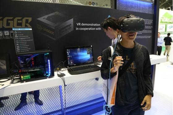 全漢的Dagger針對小型主機(jī)設(shè)計,采用SFX尺寸,通過80%金牌認(rèn)證,而且還能支持高端顯示卡,參觀者在現(xiàn)場還可以體驗安裝了Dagger的機(jī)箱平臺體驗虛擬現(xiàn)實。