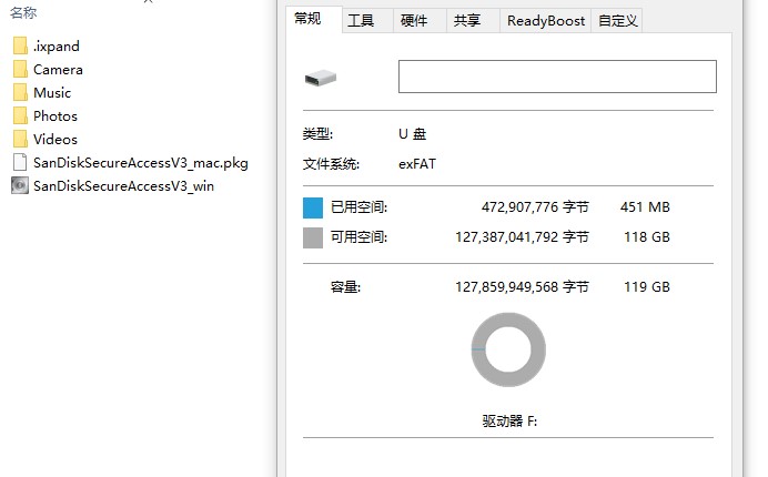 標稱128GB,我插上電腦后發現實際可用容量為119GB。