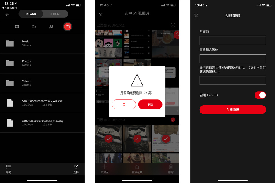 不過也不必太擔心,因為iXpand提供了加密功能,用過百度云盤的小伙伴應該了解,簡而言之就是可以設置密碼或Face ID來解鎖保護文件。