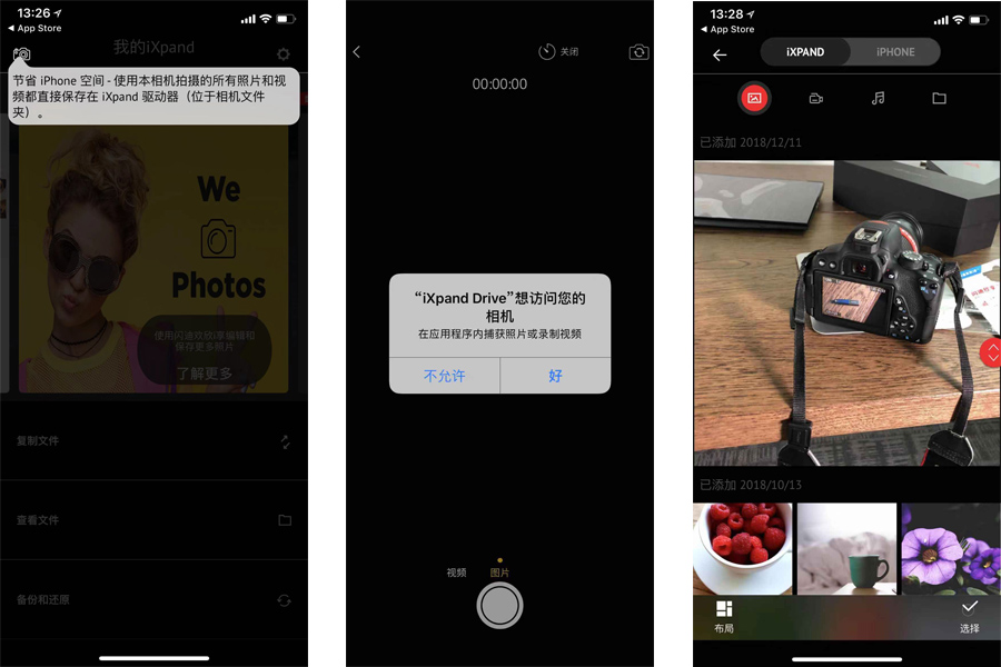 很簡單,就是不分場合的拍拍拍,8000多張的照片可不是開玩笑的,所以iXpand應用內拍照存儲的功能對我來說宛如神助。你們通過我的截圖可以看到,在iXpand頁面的左上端有個相機的符號,在插入閃存盤使用的時候,只要點擊這個標識,拍攝的圖片或者視頻就會直接存儲到閃存盤上。因為我手上的欣享足有119GB的容量,應付日常存儲拍攝的內容足夠。在性能的傳輸上,我嘗試將iPhone內的500多張照片傳到iXpand內,耗時大約10分鐘左右。但說實在的,如果你像我一樣有8000多張圖片,想要完成傳輸,那確實需要一段很長的時間。傳輸完成后,可以按iXpand默認日期分類瀏覽照片。但想要上傳其他App內的數據,你懂的,這基本不可能。(iOS說,這個鍋我不背)