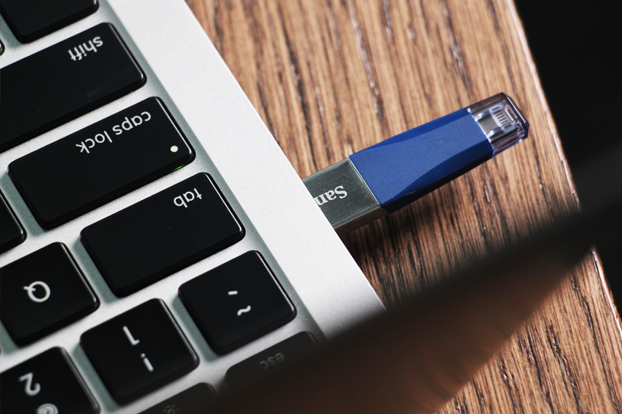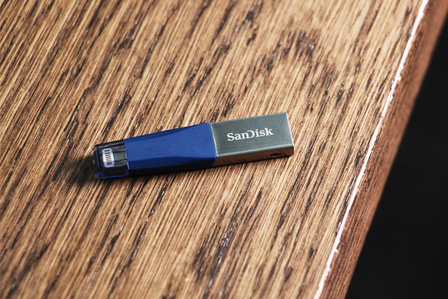 初見閃迪欣享閃存盤還是有些欣喜的,它外觀呈加長版水滴狀,不銹鋼金屬和硬質橡膠一分為二。標準USB接頭采用鋁合金包裹,與電腦USB3.0接口相連時讀取速度可達90MB/s,因為有多種容量可選,你完全可以把它當成正常U盤使用。另外一端為經過MFi認證的Lightning頭,方便與擁有Lightning頭的設備相連。