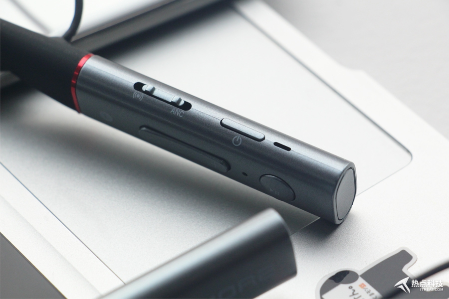 可能是考慮到大部分外貌黨對顏值的重視,1MORE降噪圈鐵耳機(jī)兩端采用了鋁合金材質(zhì),用標(biāo)志性的紅圈點(diǎn)綴。左耳集中操作按鍵,耳柄內(nèi)側(cè)有音量加減和播放暫停鍵上方集中了降噪開關(guān)和開關(guān)機(jī)/藍(lán)牙鍵等,鍵程反饋清脆。如果是第一次盲操控制這些按鍵的話,想要不費(fèi)勁的找到對應(yīng)功能,有點(diǎn)難。