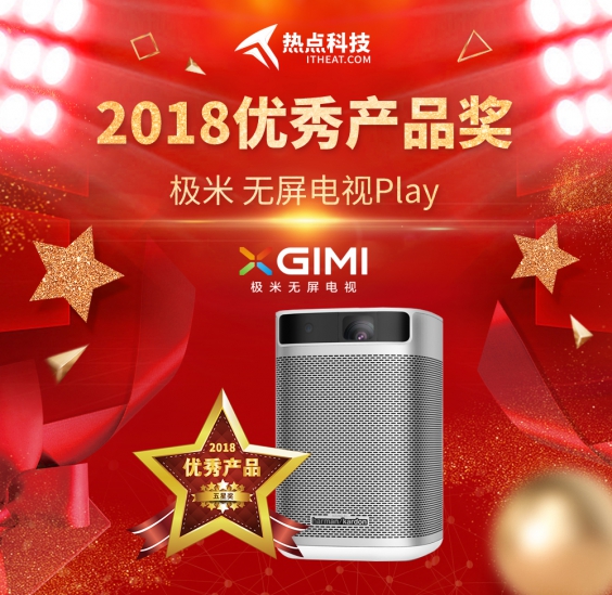 祝賀極米無屏電視Play在熱點科技2018五星獎頒獎盛典中榮獲:優秀產品獎