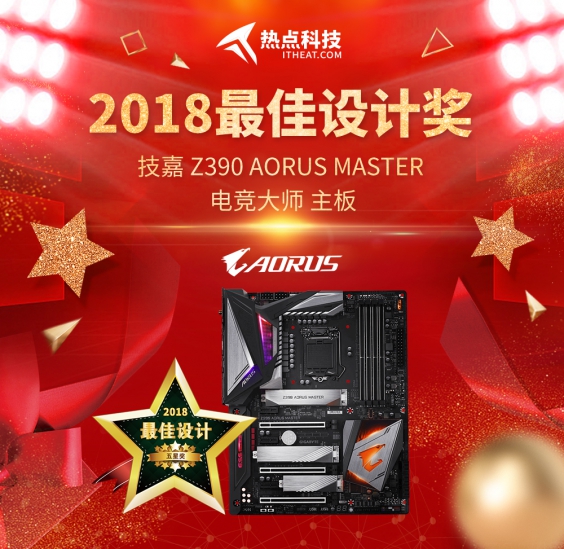 祝賀技嘉Z390 AORUS MASTER “電競大師”主板在熱點科技2018五星獎頒獎盛典中榮獲:最佳設計獎