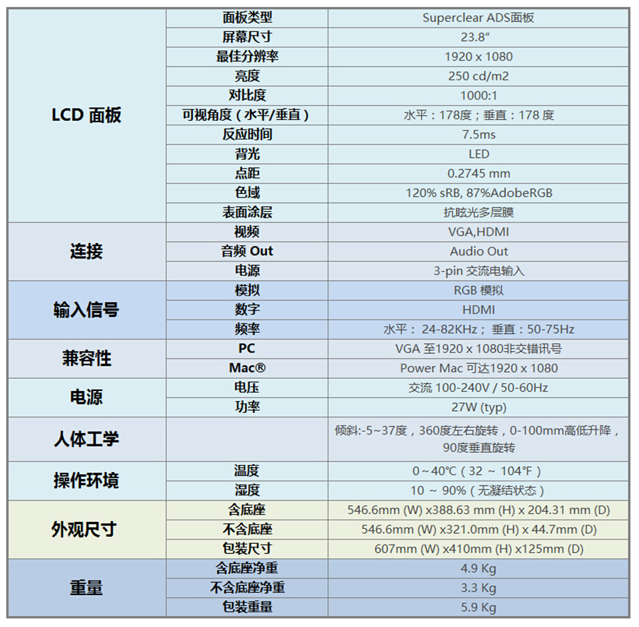 可輕松伸縮的人體工程學支架、178度廣視角和仰視25度、俯視5度的調節(jié)范圍為專業(yè)設計工作者解放了坐姿,通過對顯示器的調整也可以緩解頸部的疲勞,不得不說這個設計實在貼心。