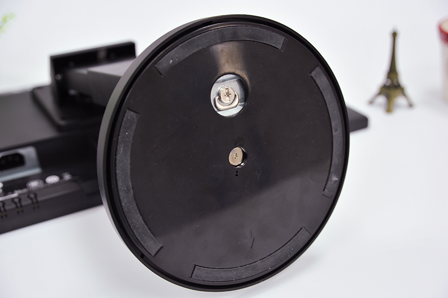 在顯示器的底座位置有一枚金屬按鈕,只需將它對準便可以輕松安裝。而防滑圓盤也可以輕松旋轉,這個設計十分討喜。