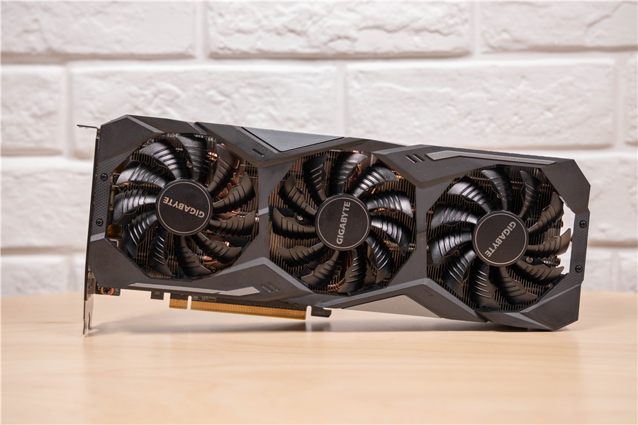 相比同門的主板,技嘉RTX 2080Ti GAMING OC 11G顯卡就低調多了。主流的黑灰配色,有棱有角的三風扇造型,除了技嘉特有的狹長造型外辨識度并不高。