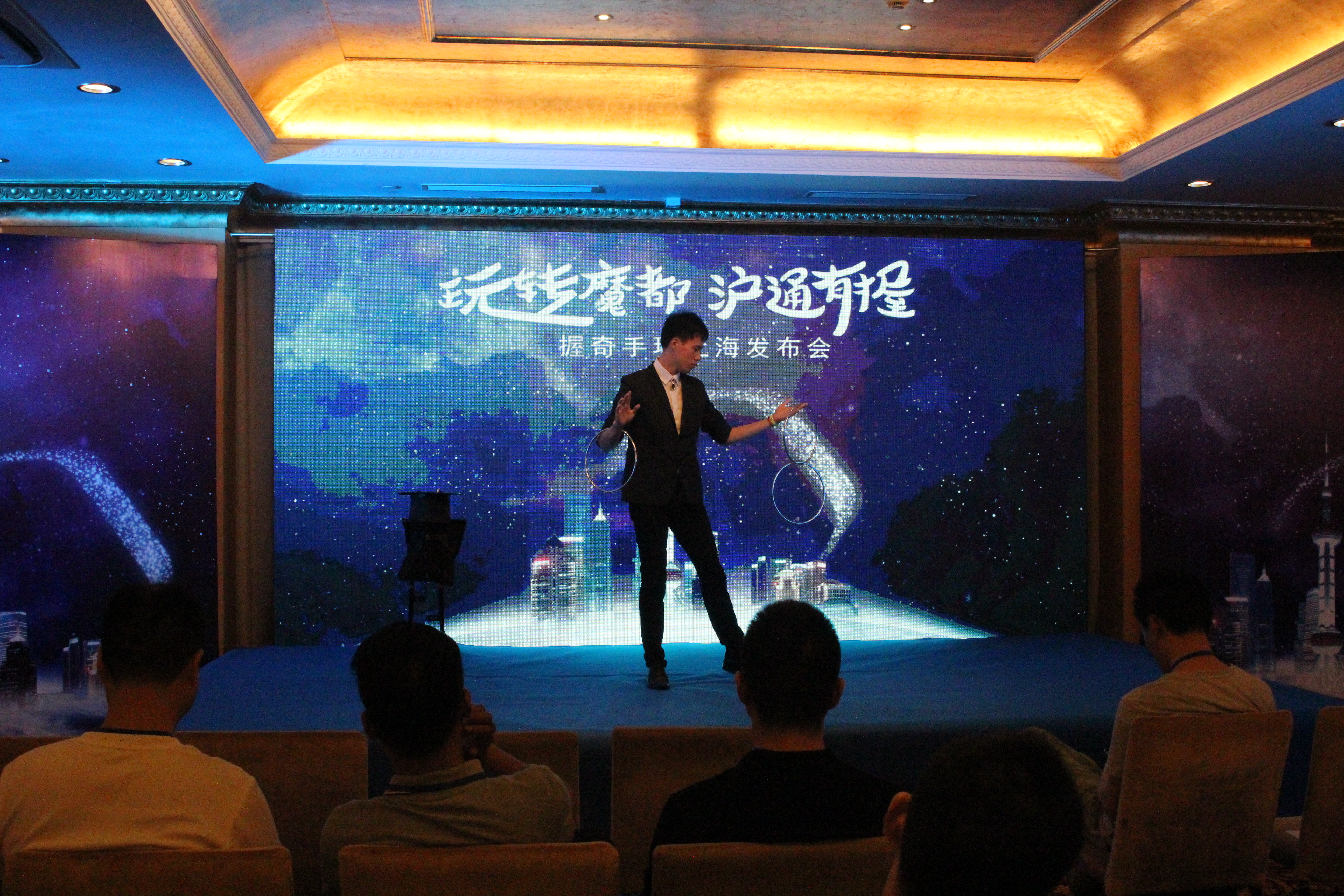 在領(lǐng)略過握奇手環(huán)上海版的風(fēng)采之后,發(fā)布會也正式開始了,一個精彩的魔術(shù)表演正式拉開了發(fā)布會的序幕,并且在表演的最后變出了一大串握奇手環(huán)。